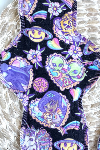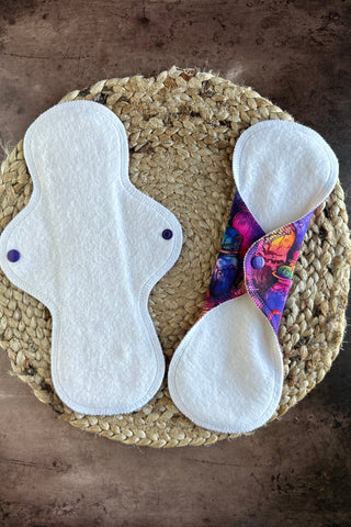 All pads are backed with a waterproof lined organic cotton fleece backer. Liner/Light pads are backed with an absorbent & waterproof layer in one.