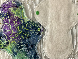 Just like disposables, cloth pads use wings to wrap around your underwear. But, instead of plastic and chemical adhesives, cloth pads use snaps to secure their wings in place.