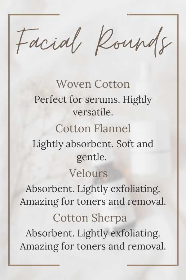 INCLUDES: SINGLE pocketed facial rounds in fabric content chosen.